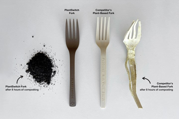 PlantSwitch turns plants into plastic. Its technology uses cellulose from agricultural byproducts to create a resin that's compostable, high-performance, low-carbon, and low-cost.